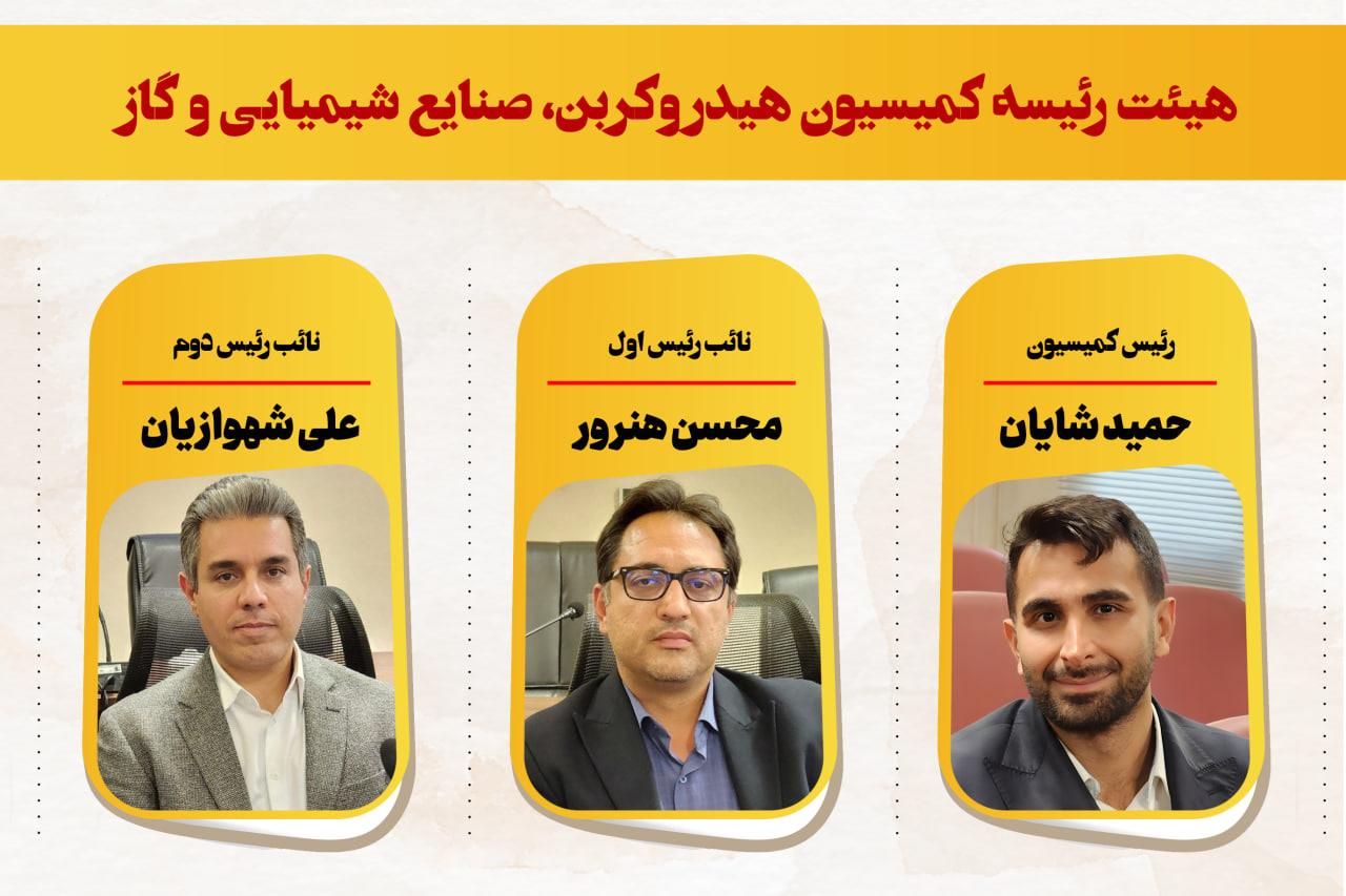 در جلسه کمیسیون هیدروکربن، صنایع شیمیایی و گاز که روز دوشنبه 12 آبان برگزار شد، هیئت رئیسه جدید با رای گیری اعضای این کگمیسیون مشخص شدند : حمید شایان رئیس، محسن هنرور نائب رئیس اول و علی شهوازیان به عنوان نائب رئیس کمیسیون انتخاب شدند .